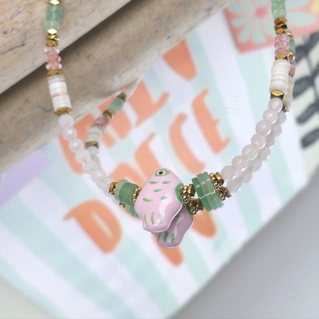 Collier poisson rose et vert