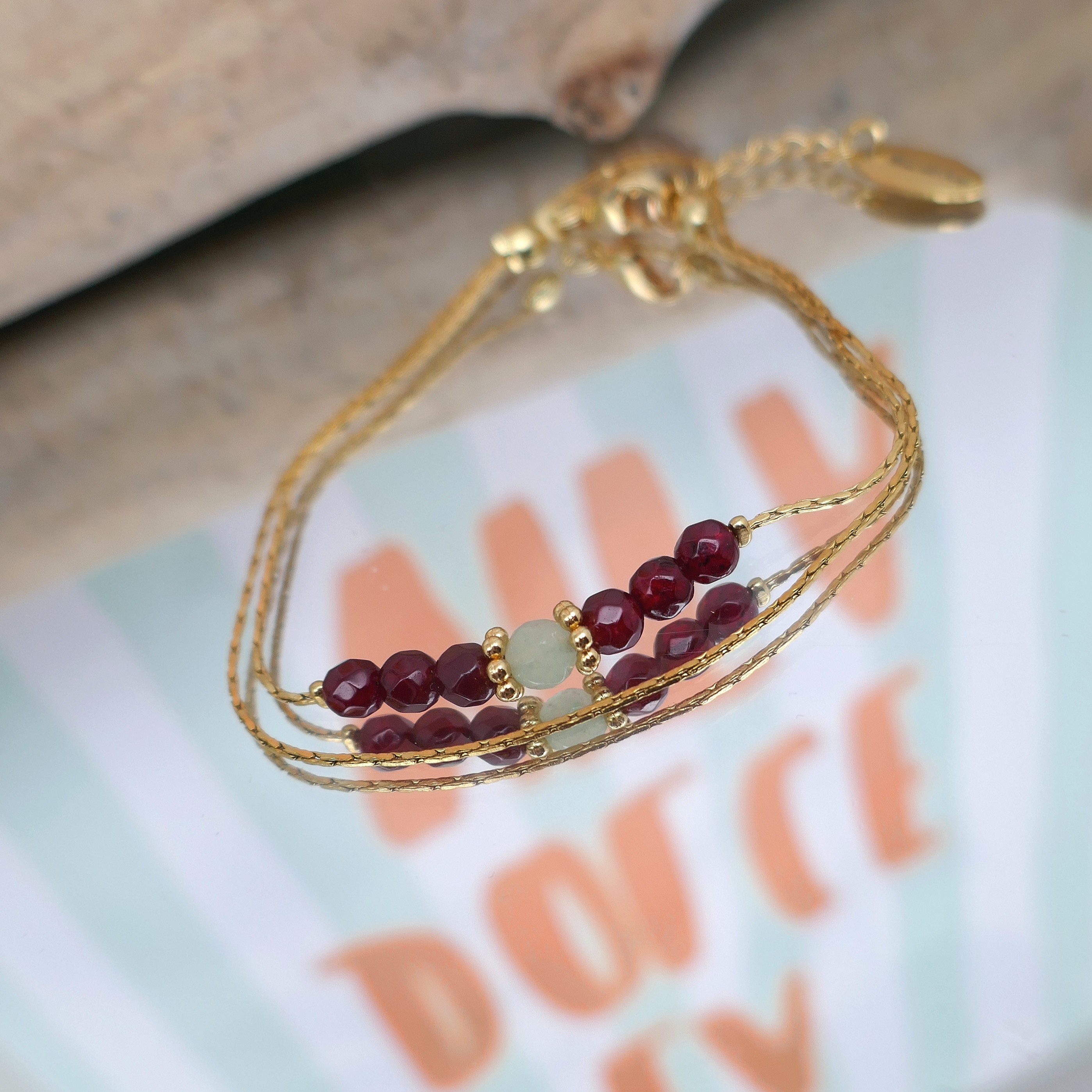 Bracelet double grenat et aventurine